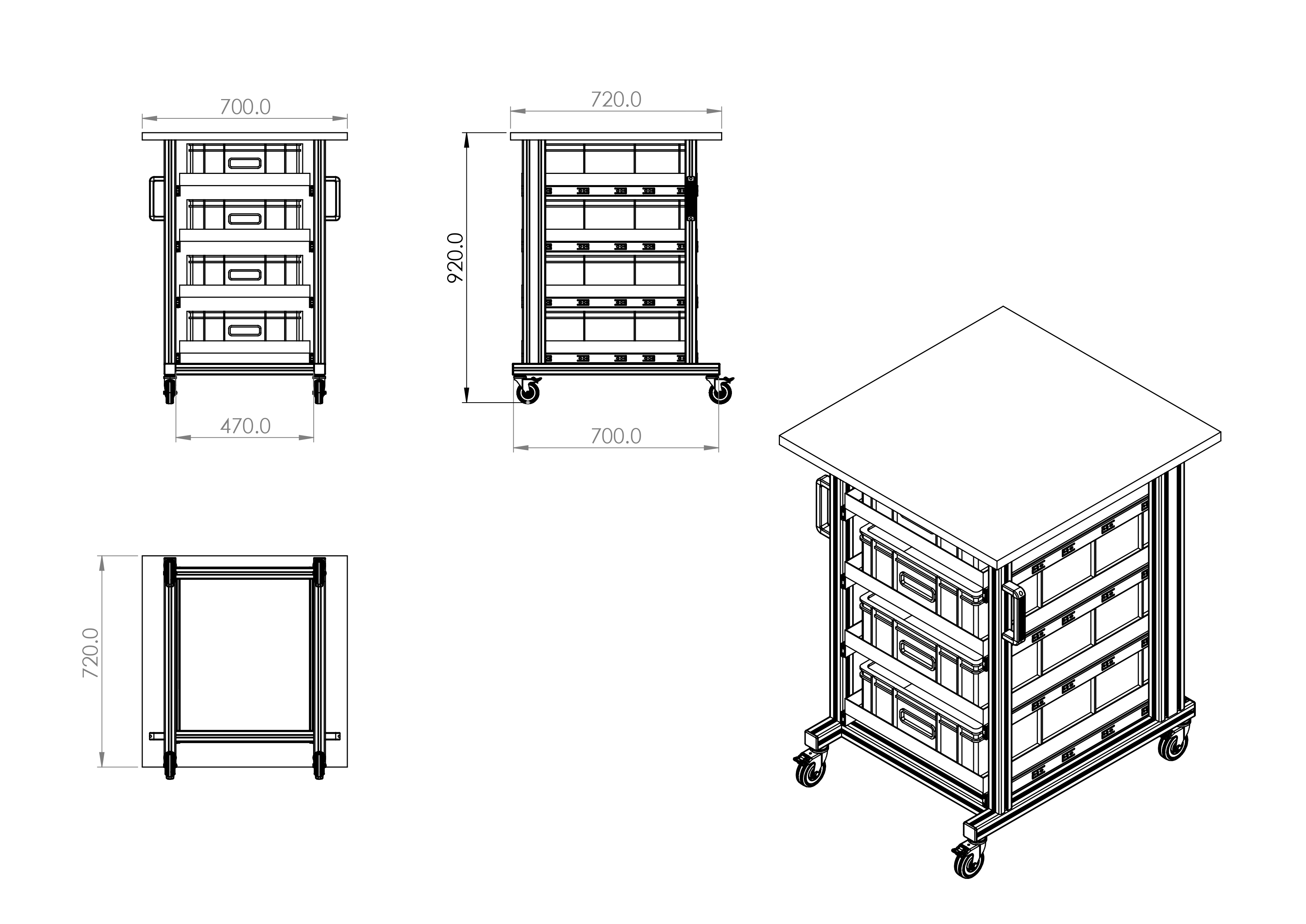 Vielseitigkeit eines bewährten Systemwagens. Arbeitsmaterialien werden