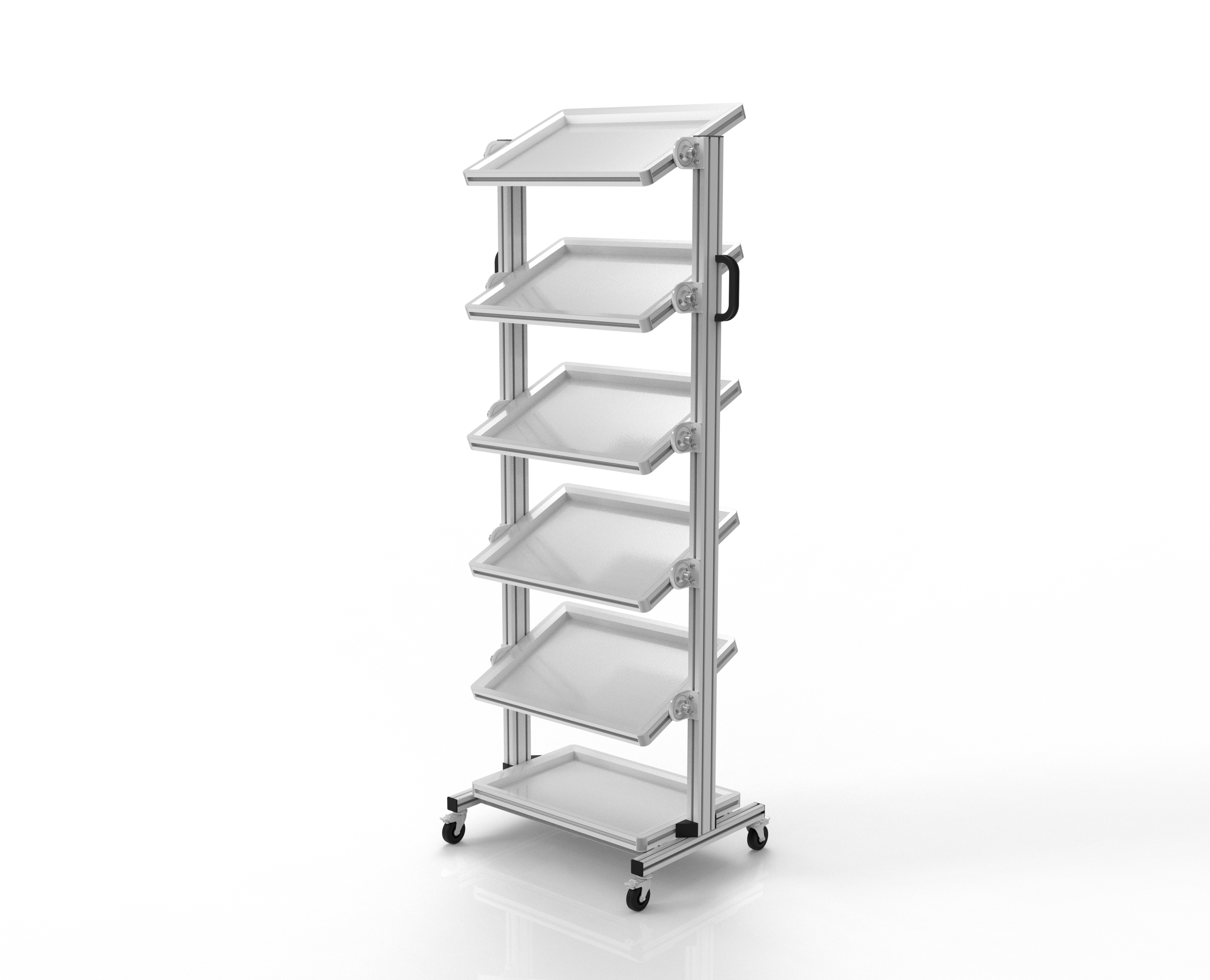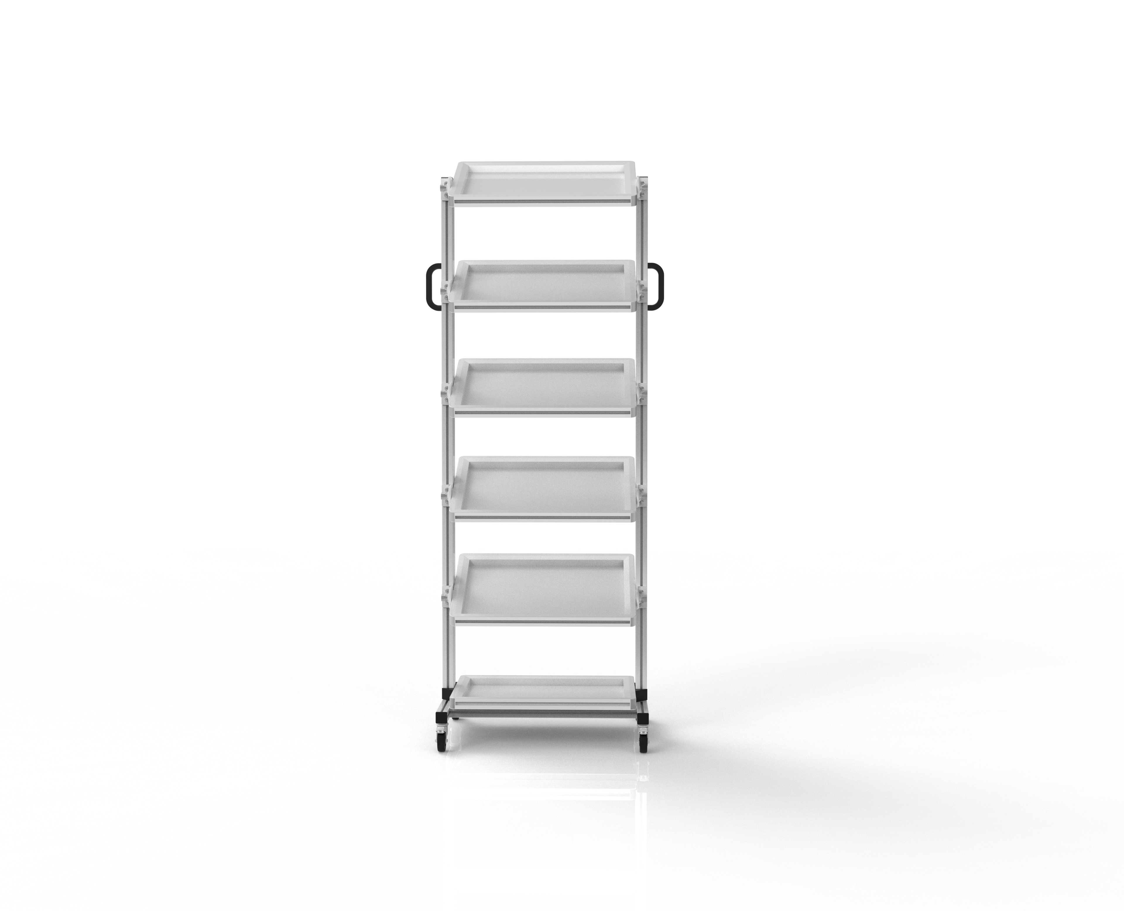 Unhandliches Umladen auf Paletten zum Transportieren und das Herumtragen von Hand ist mit Hilfe unserer Systemwagens nicht nötig.