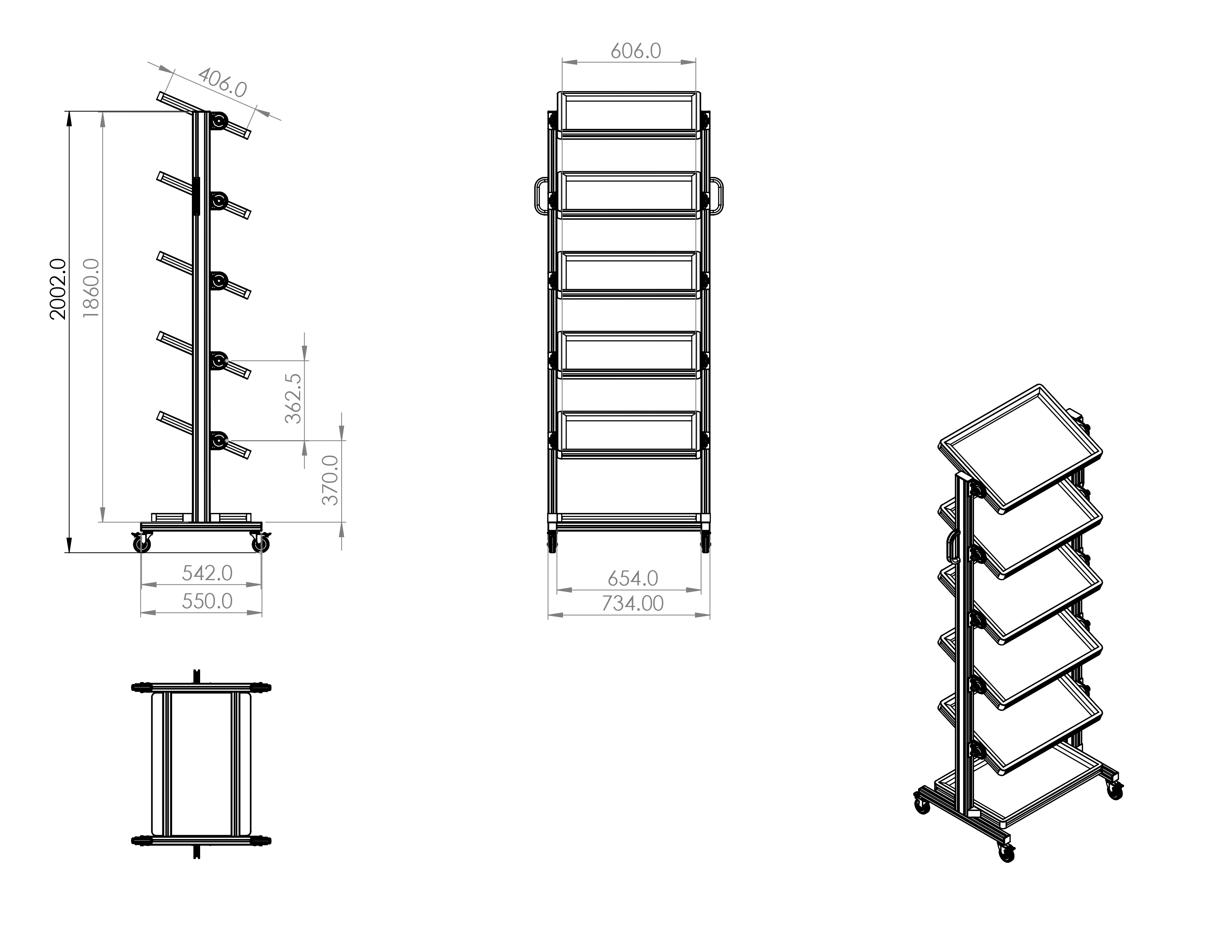 ESD Systemwagen für Eurobehälter 60 x 40 Höhe 2000 mm neigbar