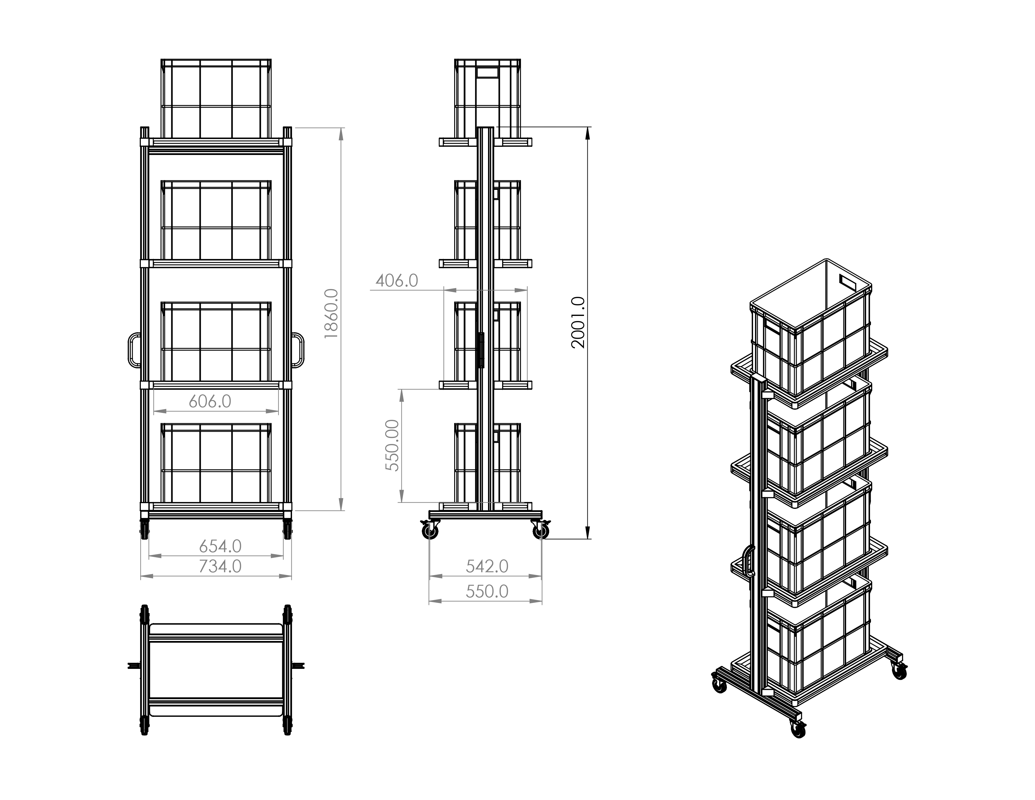 ESD Systemwagen für Eurobehälter 60 x 40 Höhe 2000 mm ohne Auszug