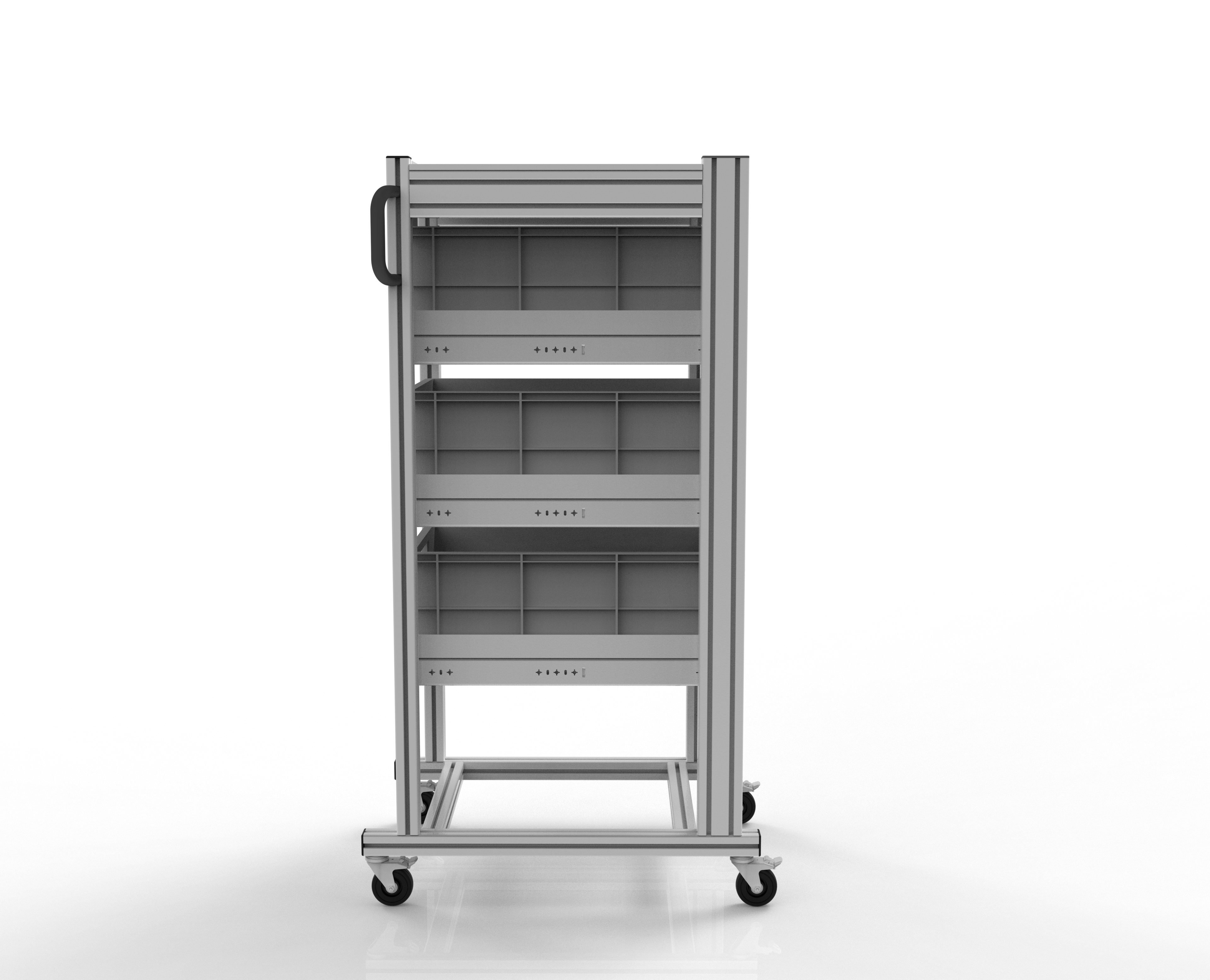 Unhandliches Umladen auf Paletten zum Transportieren und das Herumtragen von Hand ist mit Hilfe unserer Systemwagens nicht nötig.
