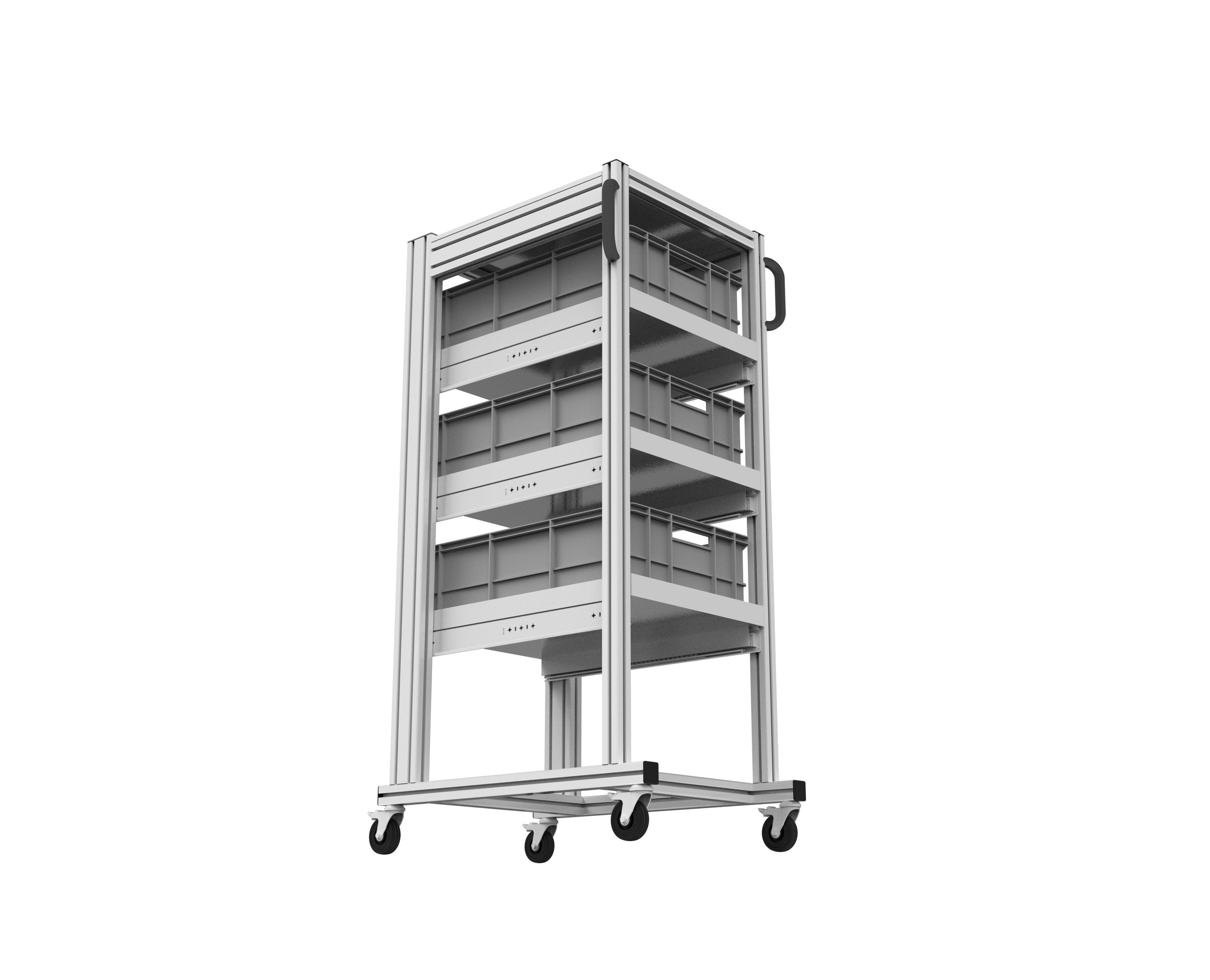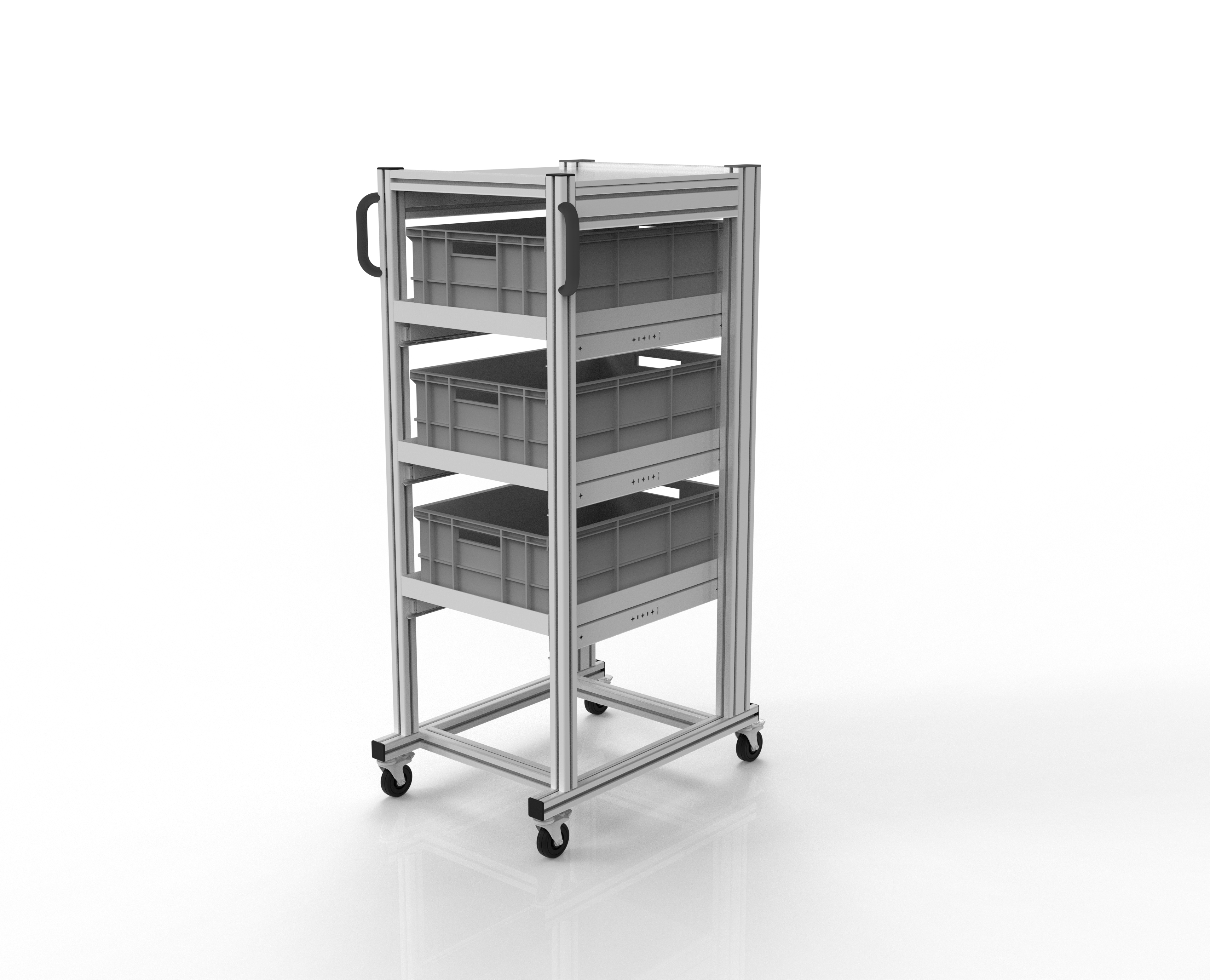 Unser ESD Systemwagen für Eurobehälter  ist die perfekte Lösung, wenn der  Inhalt verschiedener Euroboxen immer wieder an verschiedenen Arbeitsplätzen benötigt wird.