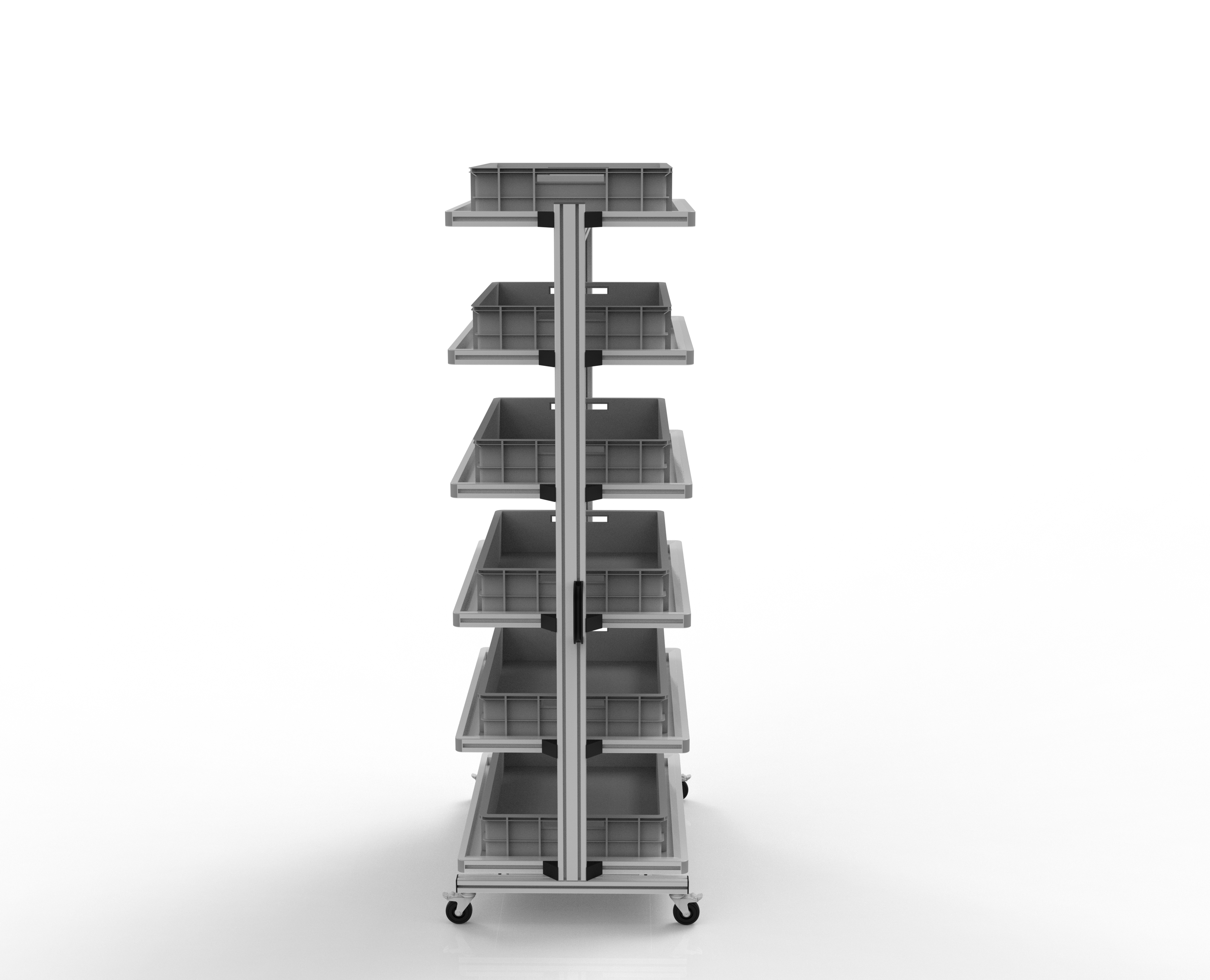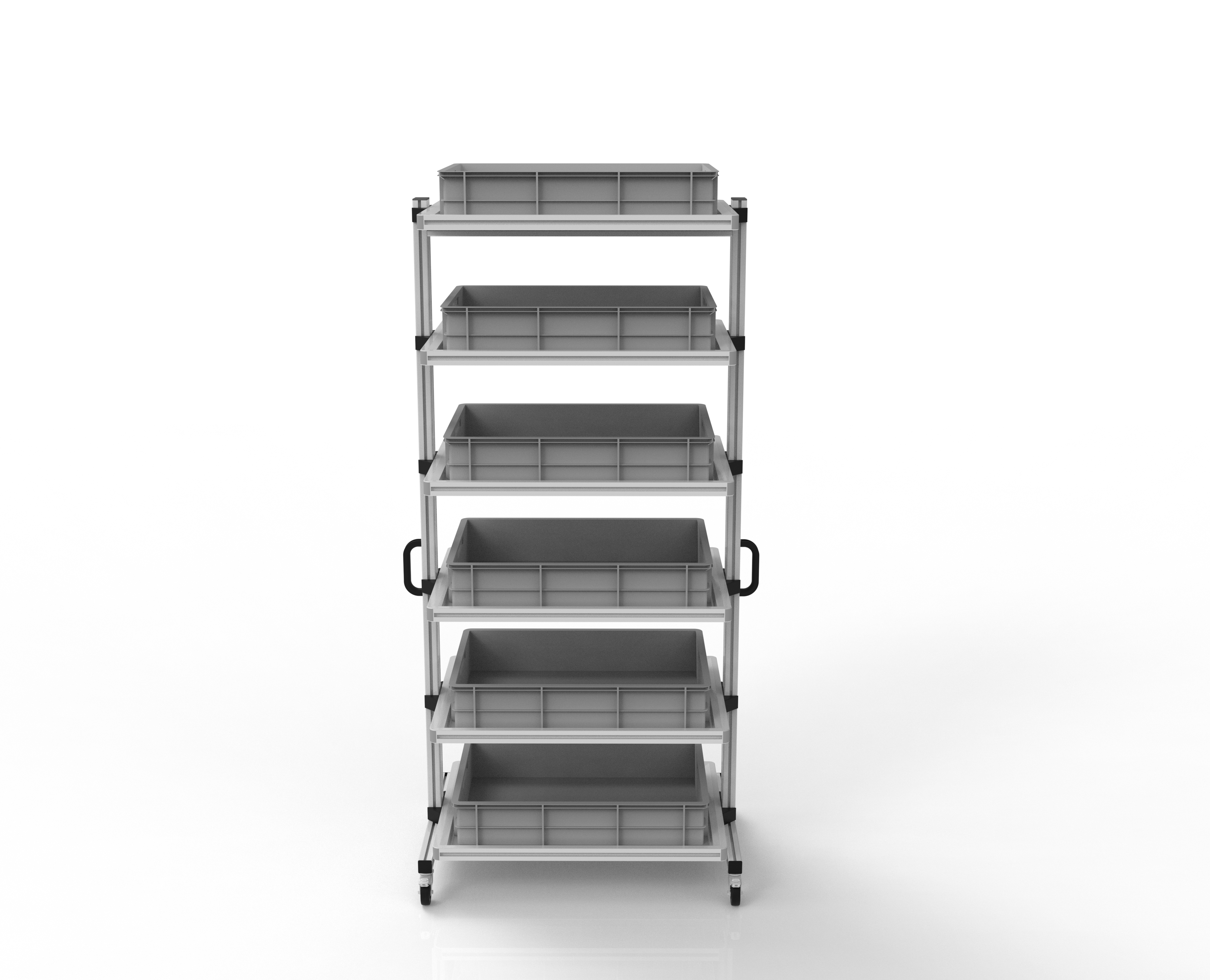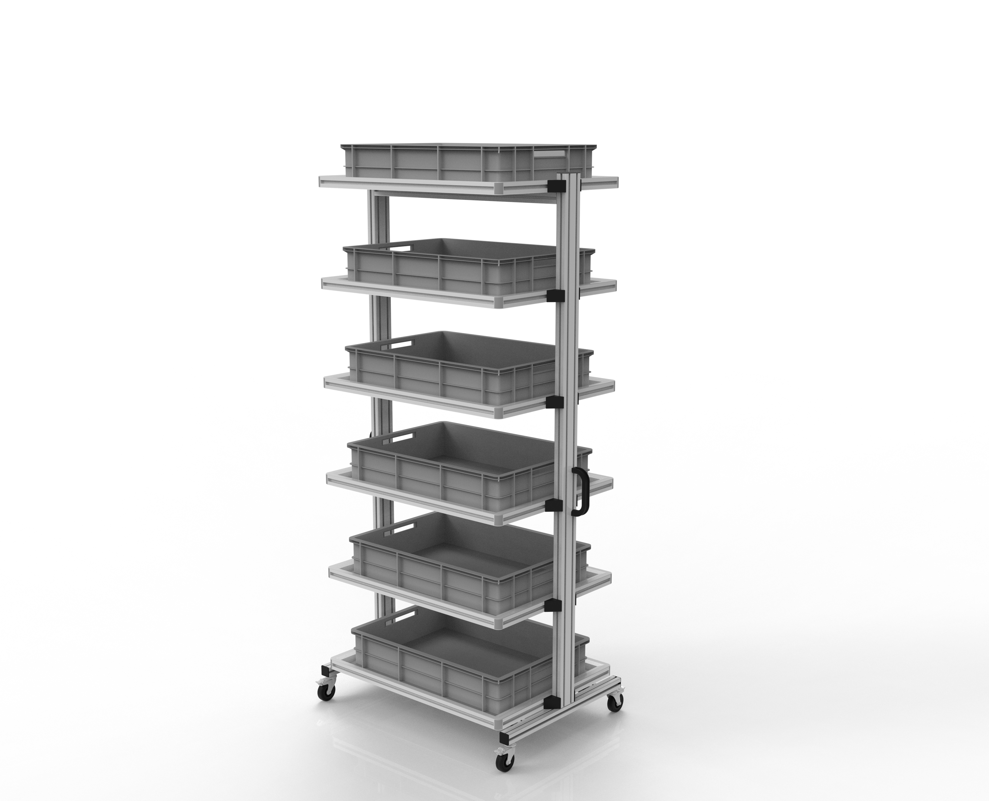 Unser ESD Systemwagen für Eurobehälter  ist die perfekte Lösung, wenn der  Inhalt immer wieder an verschiedenen Arbeitsplätzen benötigt wird. Die Wagen werden wahlweise  mit oder ohne Eurobehälter geliefert.