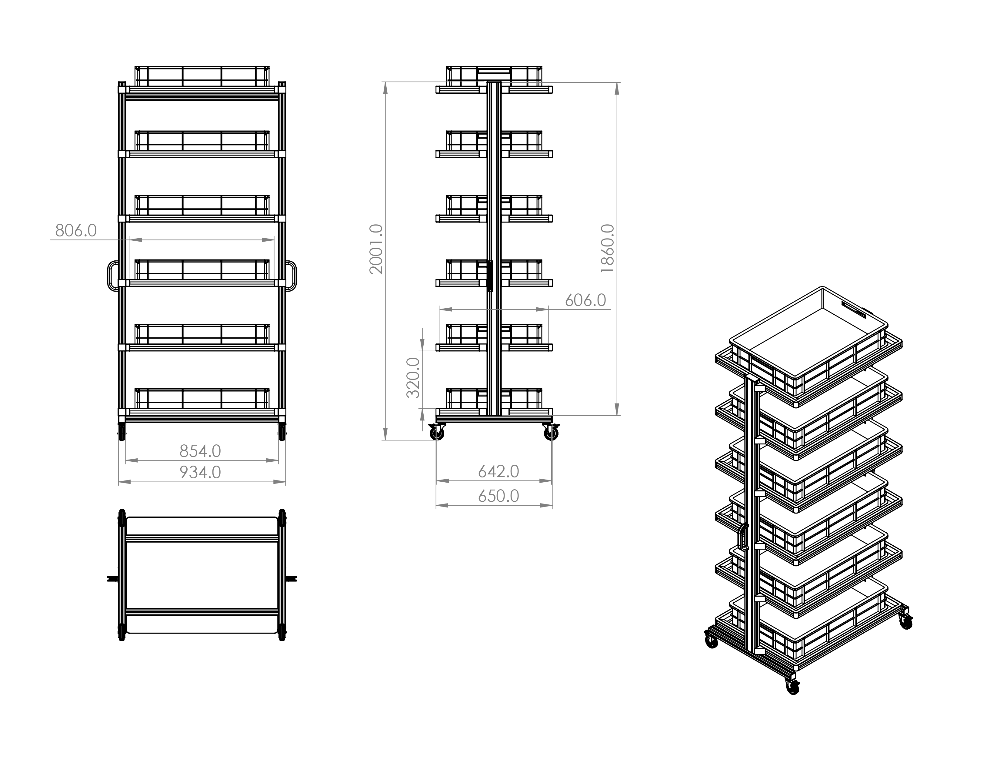 ESD Systemwagen für Eurobehälter 80 x 60 Höhe 2000 mm ohne Auszug