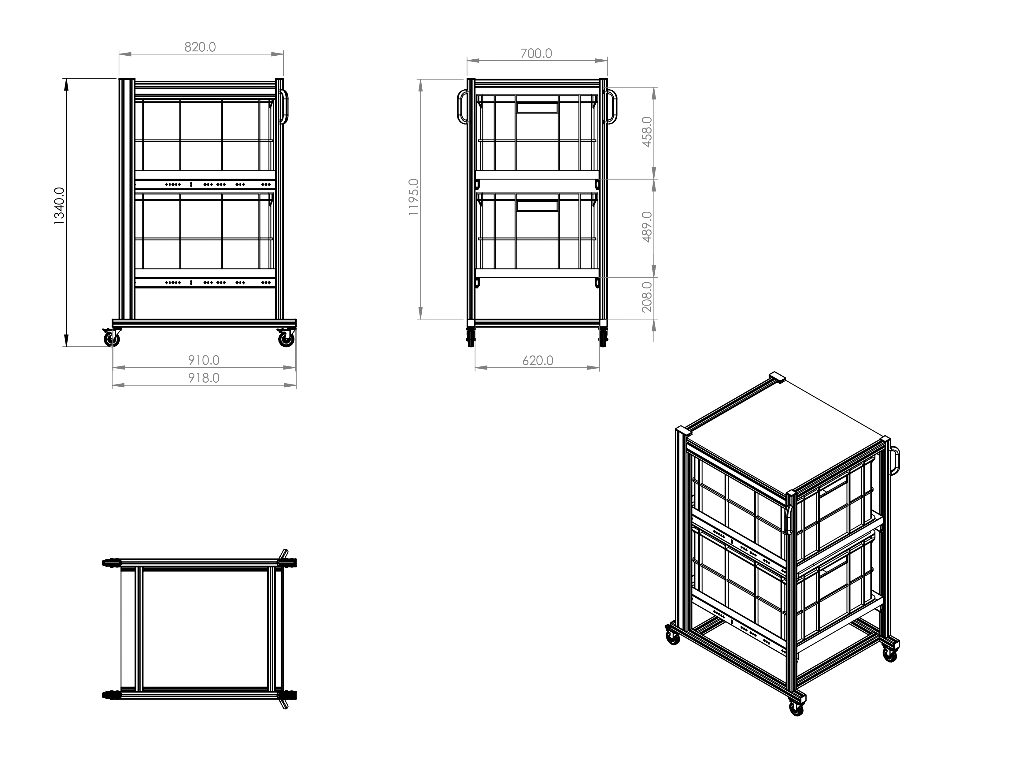 Unhandliches Umladen auf Paletten zum Transportieren und das Herumtragen von Hand ist mit Hilfe unserer Systemwagens nicht nötig.