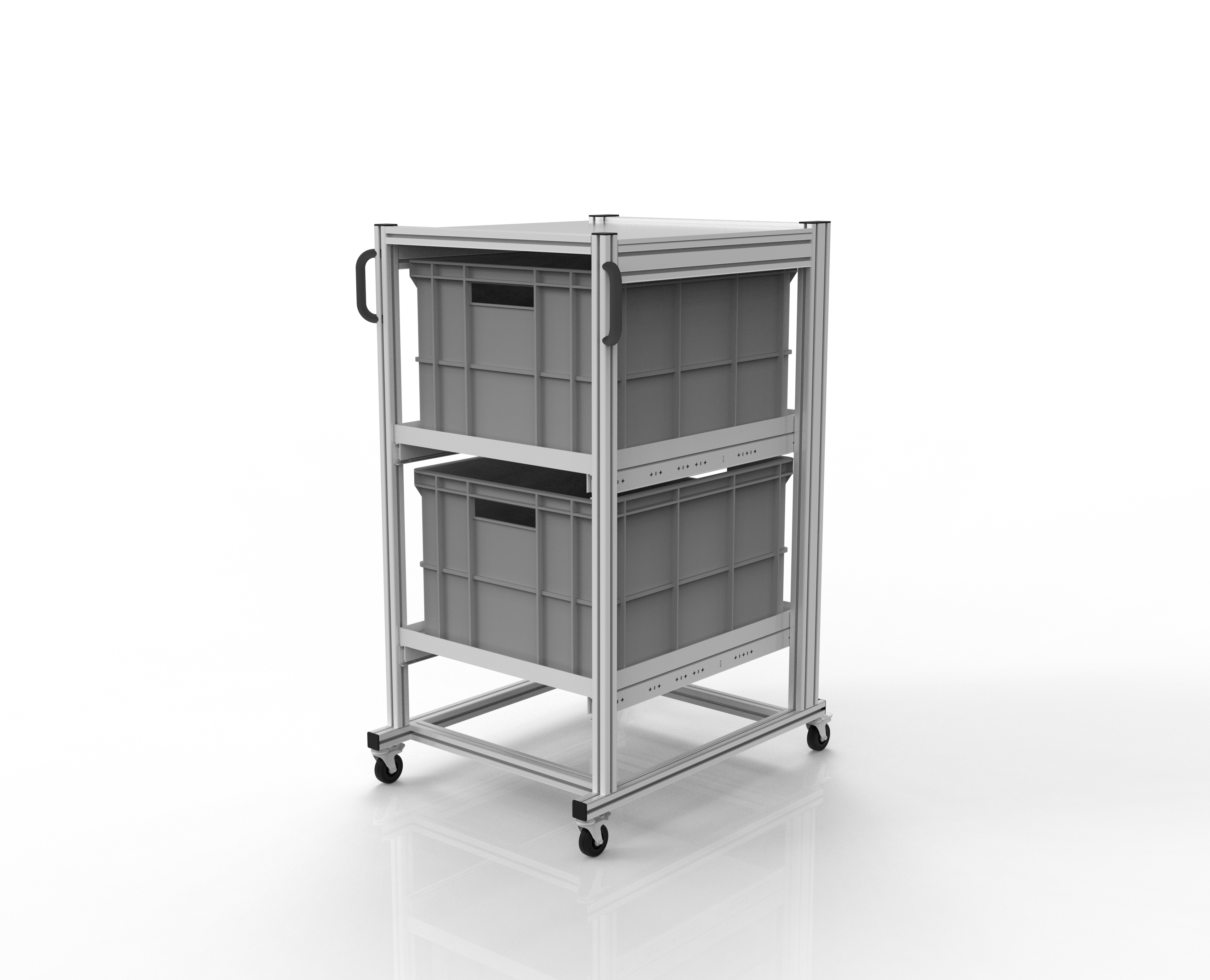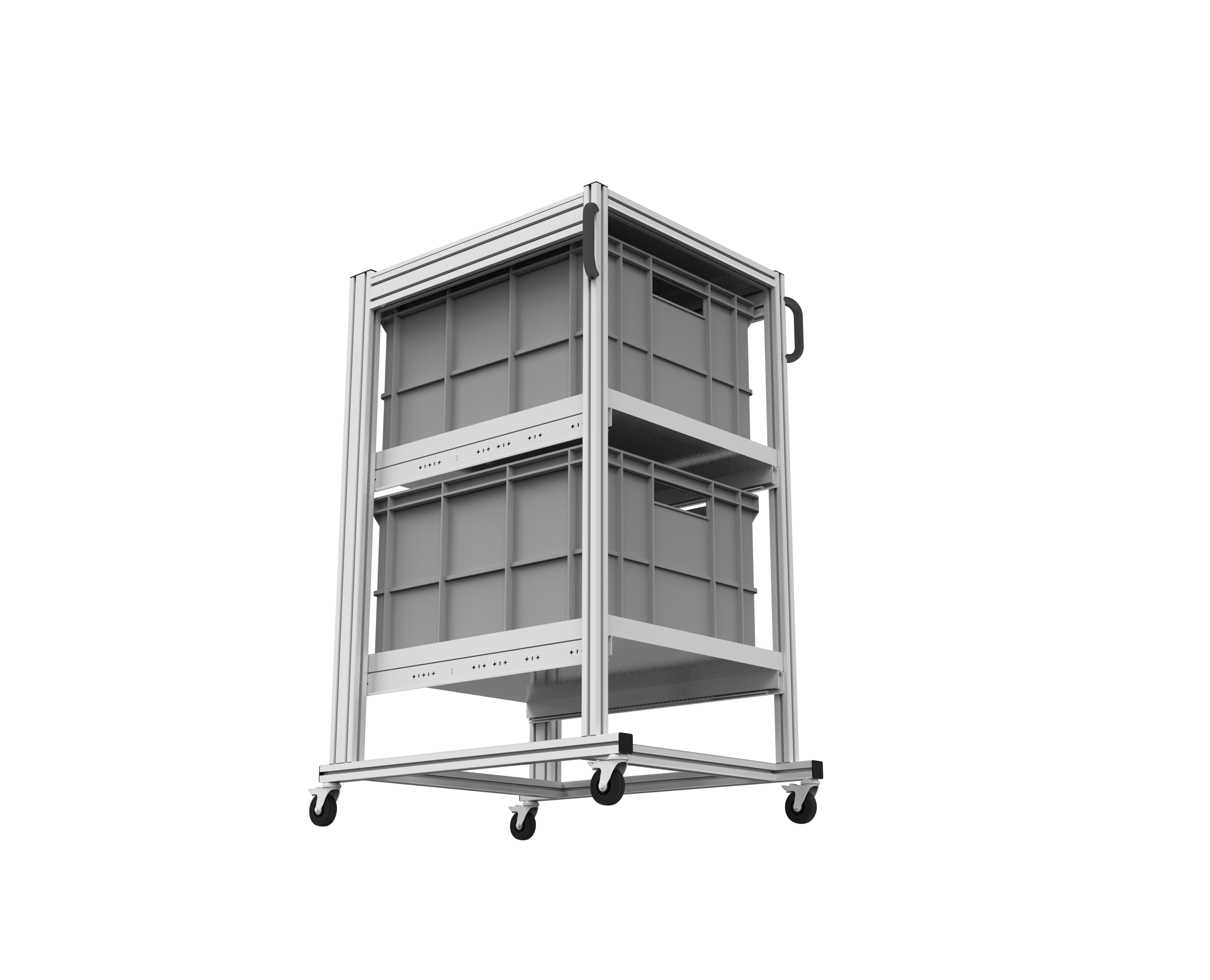 Unser ESD Systemwagen für Eurobehälter  ist die perfekte Lösung, wenn der  Inhalt verschiedener Euroboxen immer wieder an verschiedenen Arbeitsplätzen benötigt wird.