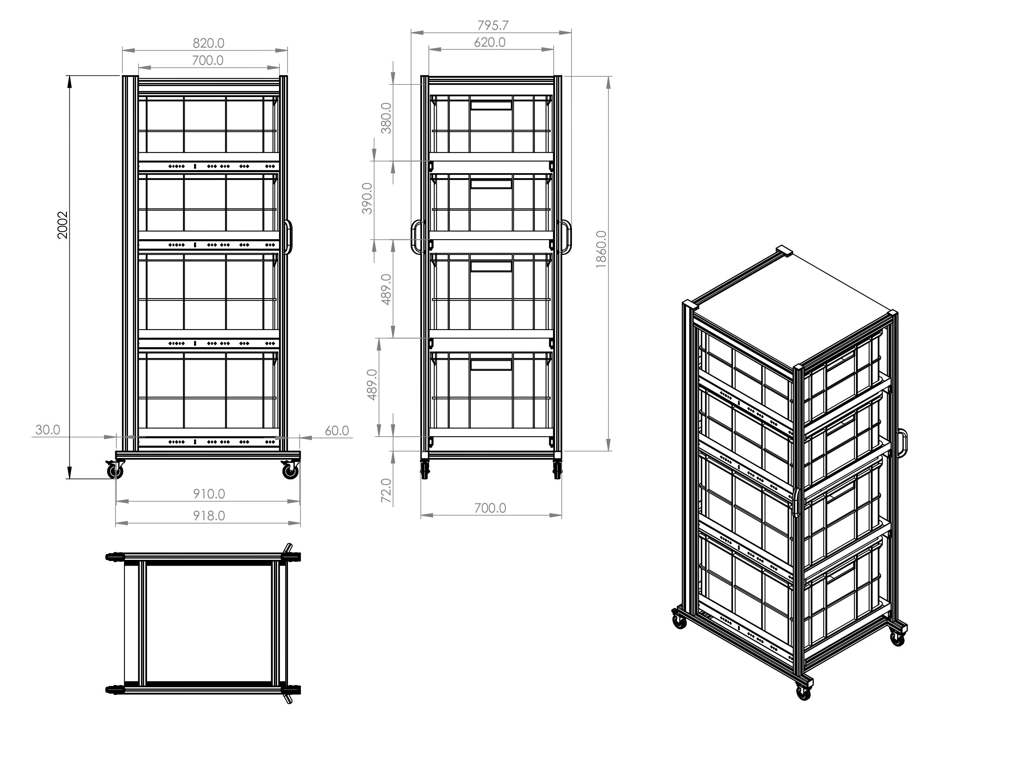 Unhandliches Umladen auf Paletten zum Transportieren und das Herumtragen von Hand ist mit Hilfe unserer Systemwagens nicht nötig.