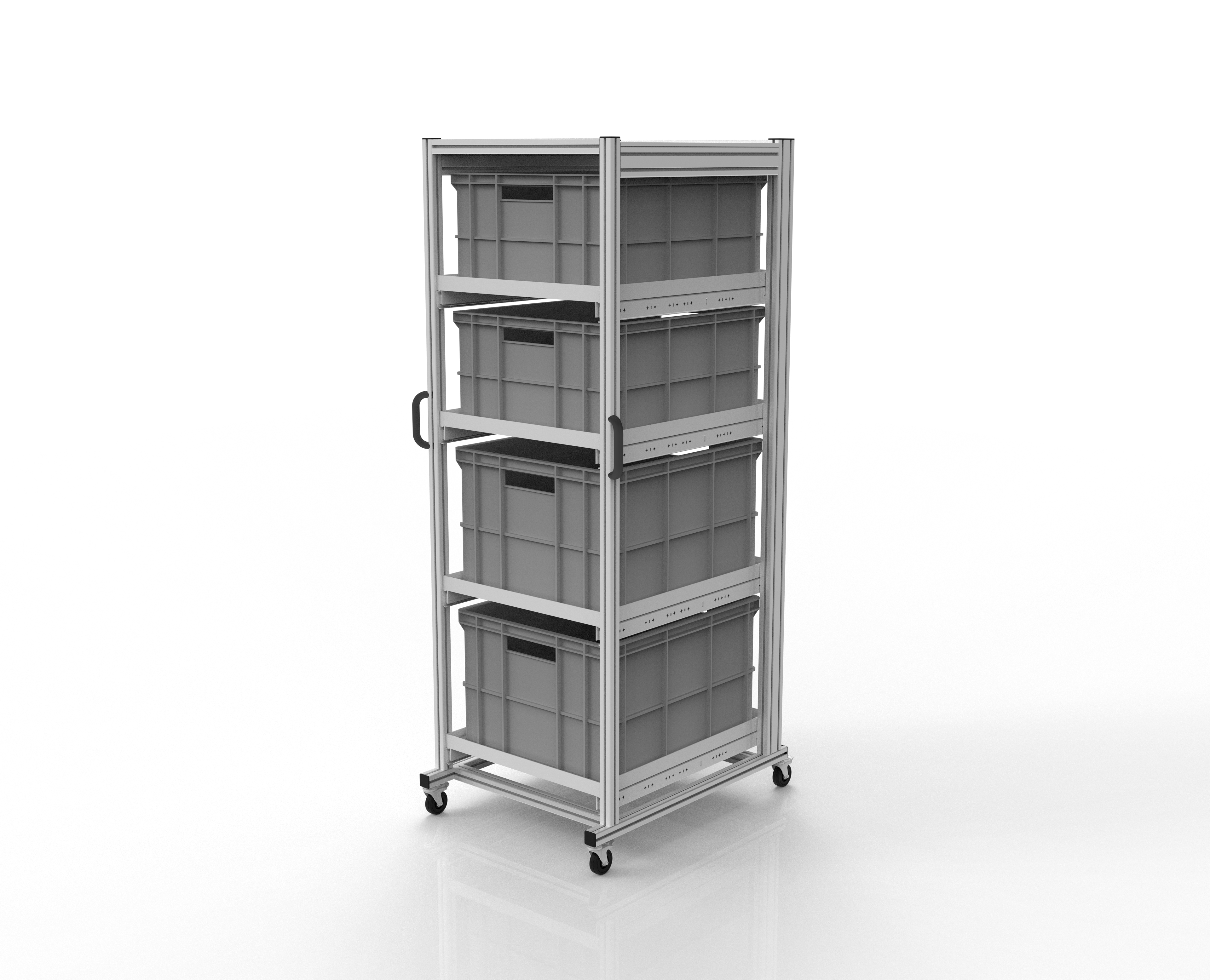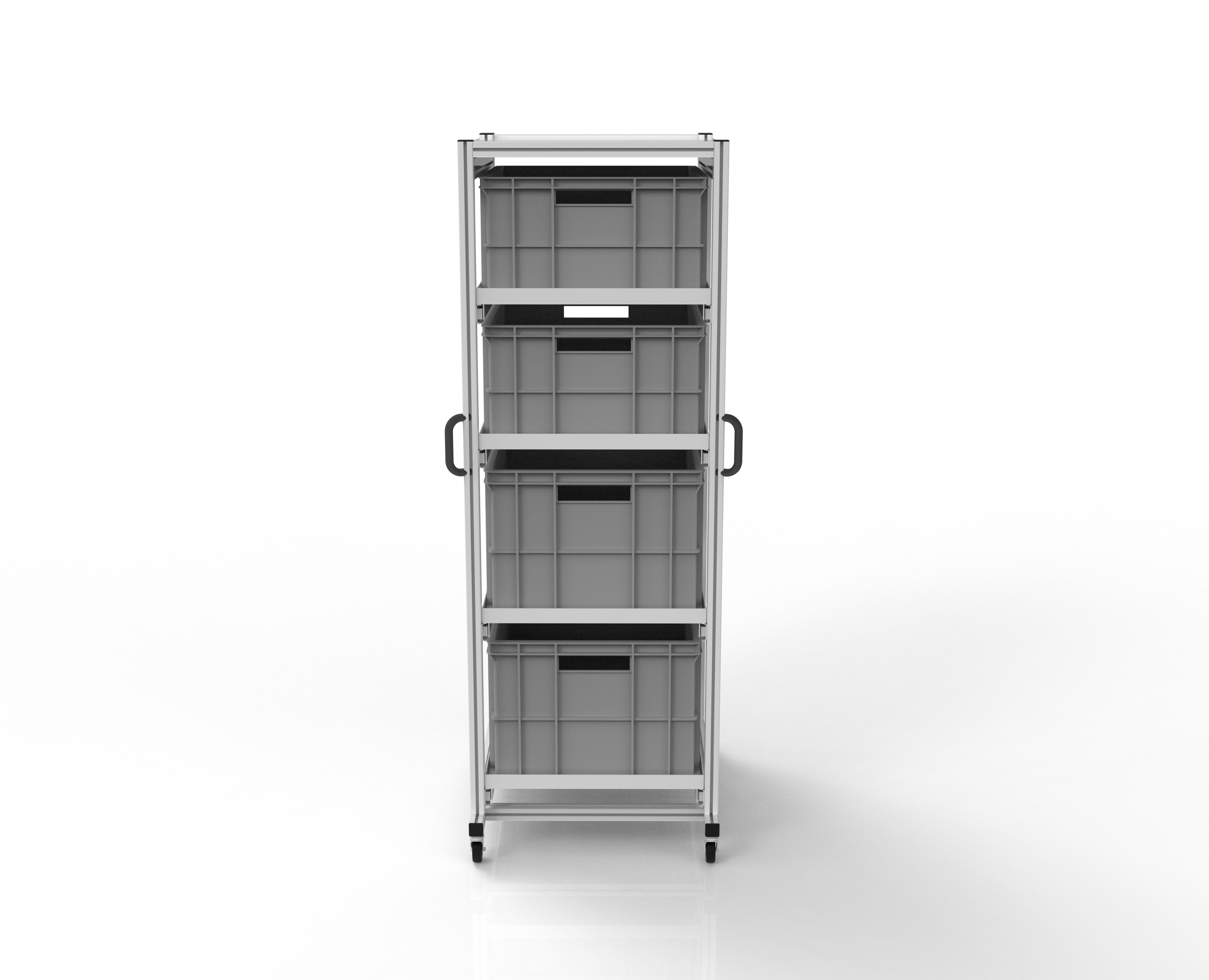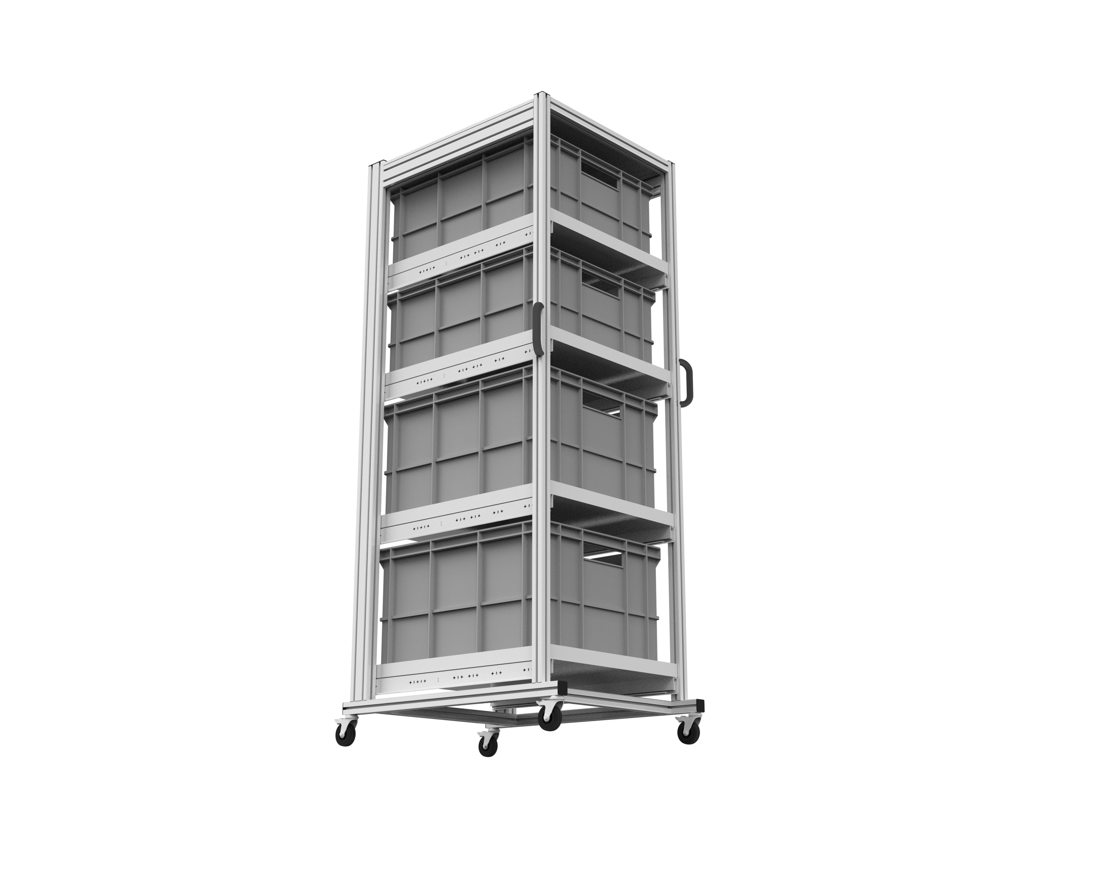 Unser ESD Systemwagen für Eurobehälter  ist die perfekte Lösung, wenn der  Inhalt verschiedener Euroboxen immer wieder an verschiedenen Arbeitsplätzen benötigt wird.