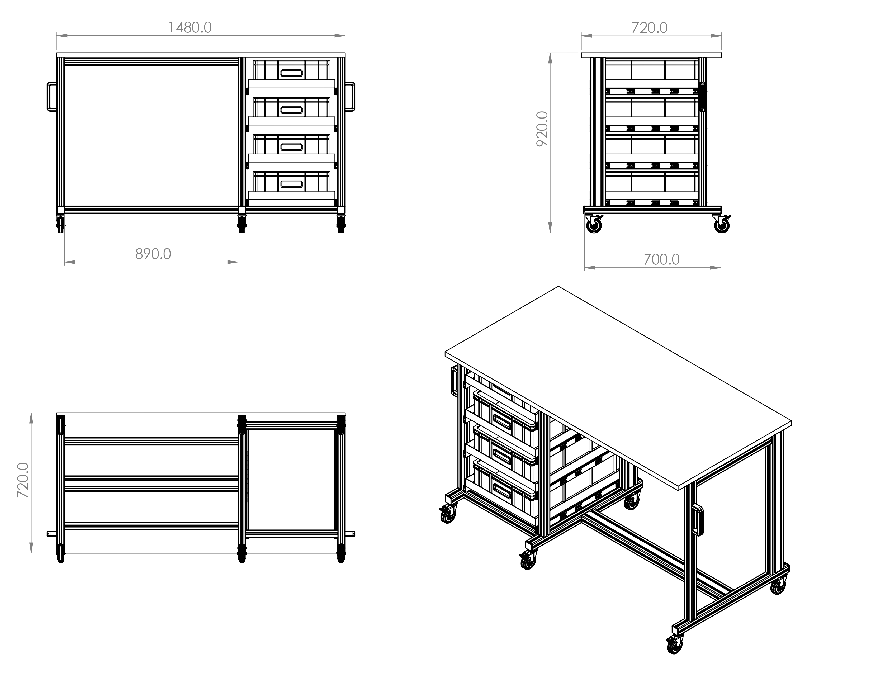 Systemtisch Pro 1480x720 mm für Eurobehälter