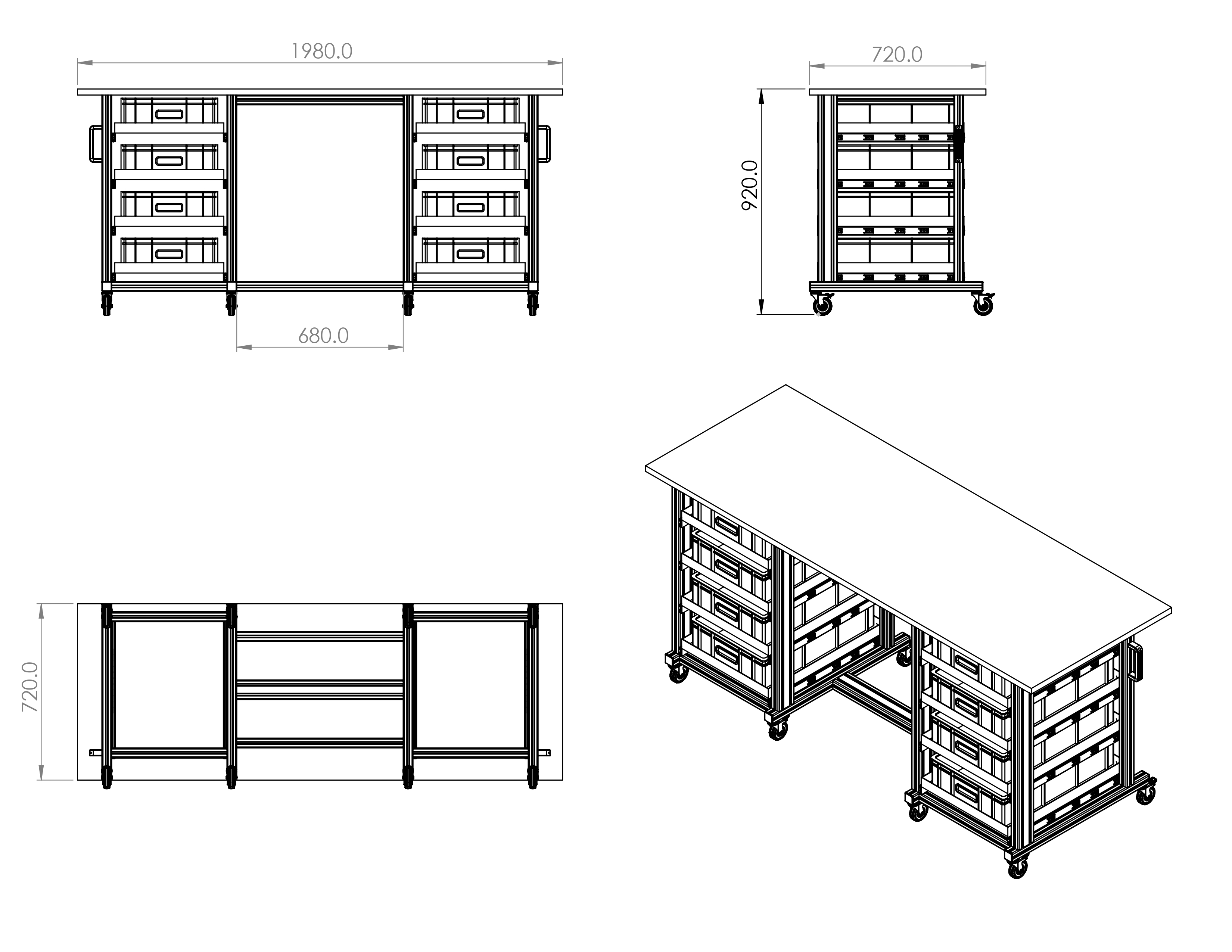 Systemtisch Pro 1980x720 mm für Eurobehälter
